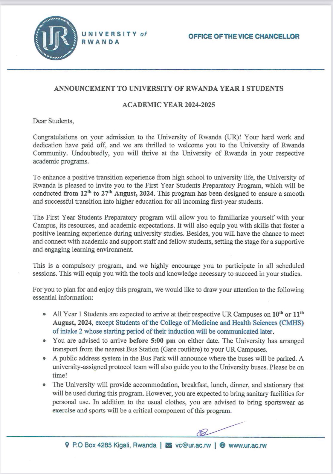 UR CE Rwanda on X: “Urgent Announcement for @Uni_Rwanda Year One